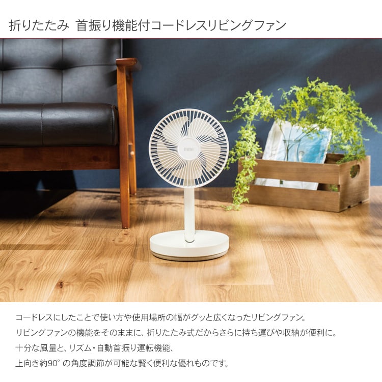 商品説明:コードレスにしたことで使い方や使用場所の幅がグッと広くなった全く新しいリビングファン。