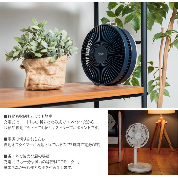 PRISMATE プリズメイト 折りたたみ コードレスリビングファン 首振り機能付 ホワイト 扇風機 空気循環 サーキュレーター 空調機 風量調節 省エネ USB充電 コードレス 持ち運び可能 オフタイマー モバイルバッテリー アウトドア キャンプ シンプル おしゃれ