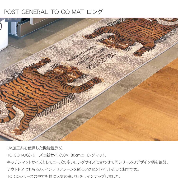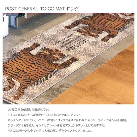 POST GENERAL ポストジェネラル TO-GO MAT トゥーゴーマット ロング TIGER 洗える ラグ おしゃれ キッチンマット 洗濯 タイガー トラ 虎 玄関マット リビング キッチン UV加工 厚手 北欧 ベランピング