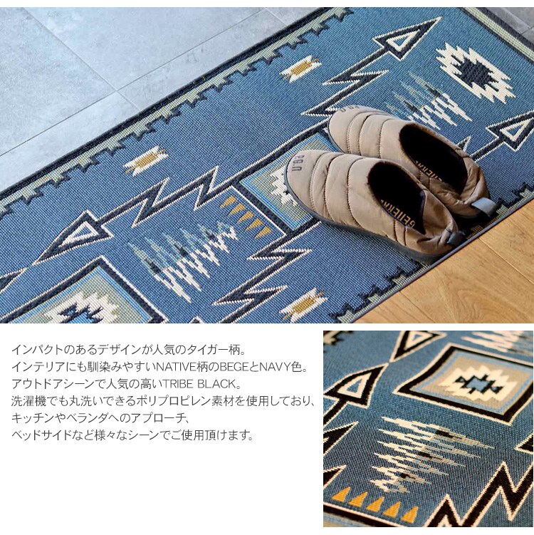 インテリアにも馴染みやすいNATIVE柄のBEGEとNAVY色。