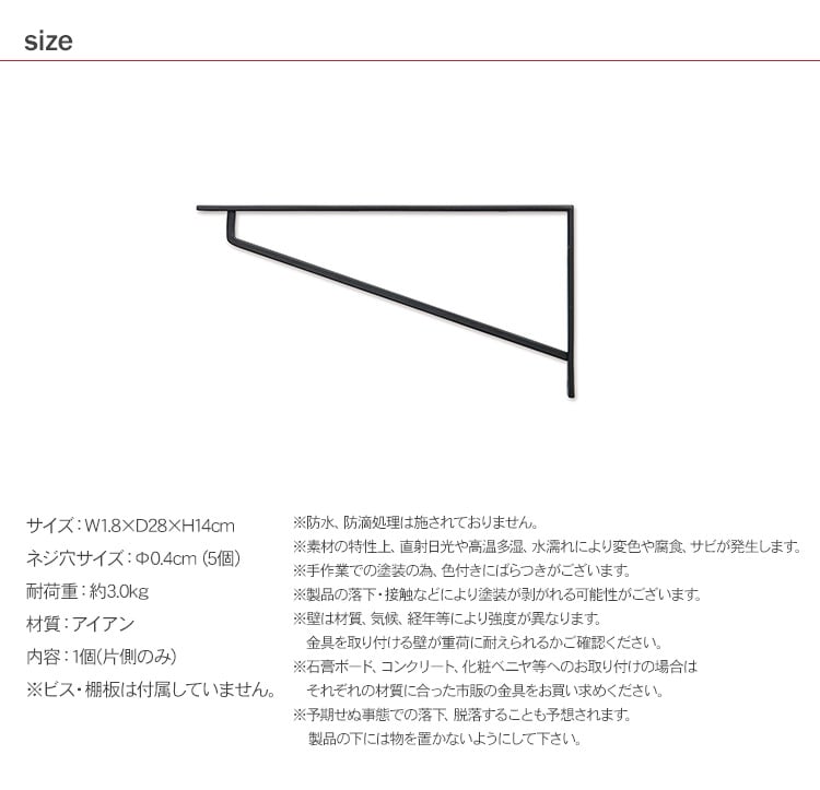 商品説明:トライアングル型のシンプルなアイアンブラケット。