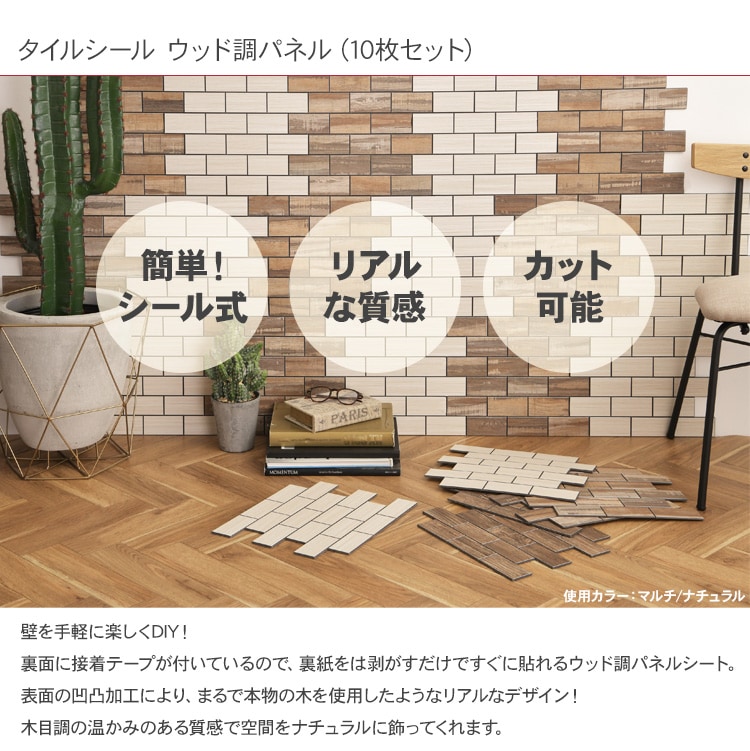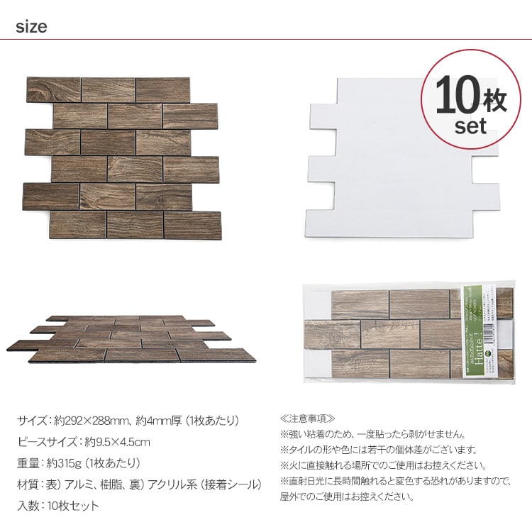 裏テープ付き Hatte (アルミパネル) 1ロット(10枚) マルチ _PP02 ウッドパネル 壁 タイルシール キッチンタイル カフェ 店舗 インテリア キッチン リビング 寝室 玄関 木目調 ウッド調 ナチュラル DIY 室内 おしゃれ
