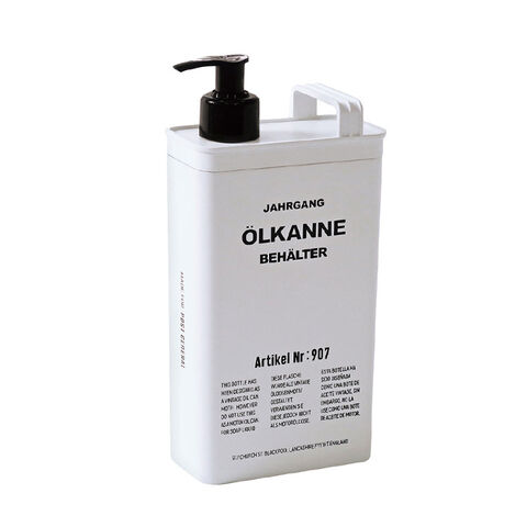 商品説明:ビンテージのモーターオイル缶をモチーフにデザインしたディスペンサーボトル。