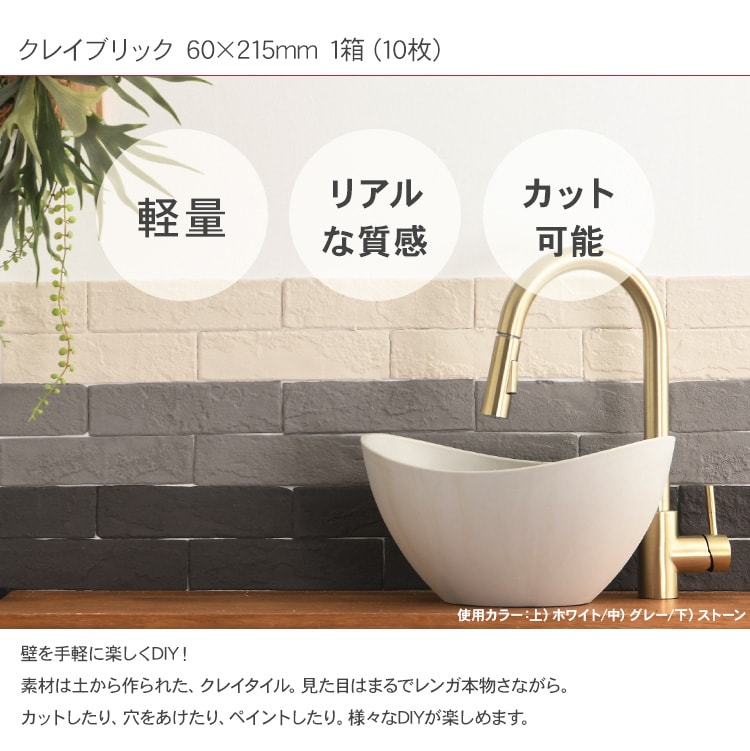 クレイブリック 60×215mm 1箱(10枚) ホワイト _PP02 レンガ タイル タイルシール 壁 キッチンタイル カフェ 店舗 インテリア キッチン リビング 寝室 玄関 テーブル 浴室 洗面台 トイレ 石材 DIY 屋外 室内 おしゃれ