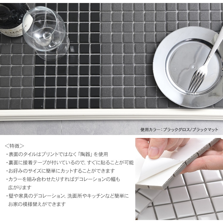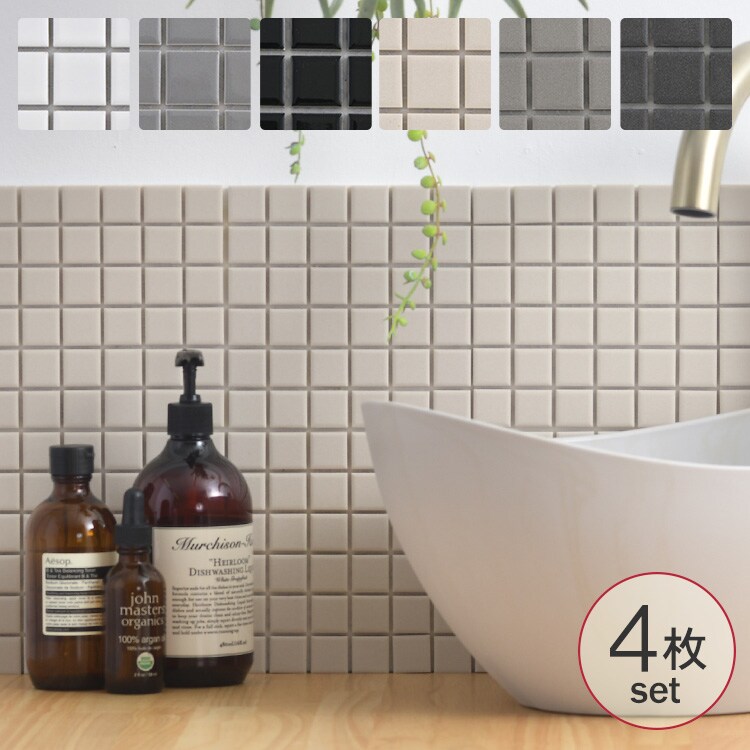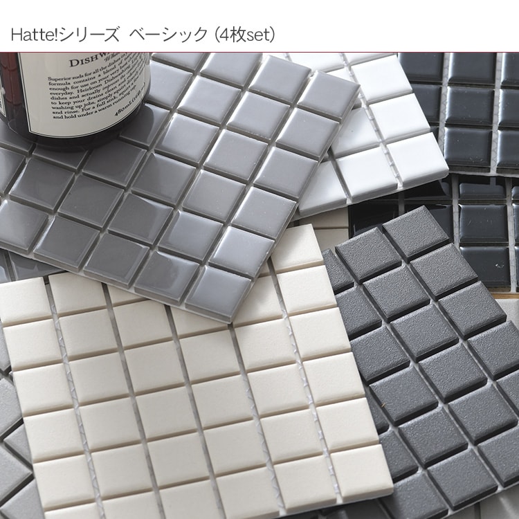 裏テープ付き Hatte (25mm角ベーシック) 1ロット(4枚) ホワイトグロス _PP02 陶器 タイルシール 壁 キッチンタイル カフェ 店舗 インテリア キッチン リビング 寝室 玄関 テーブル 浴室 洗面台 トイレ 屋外 室内 DIY おしゃれ 北欧 インテリア
