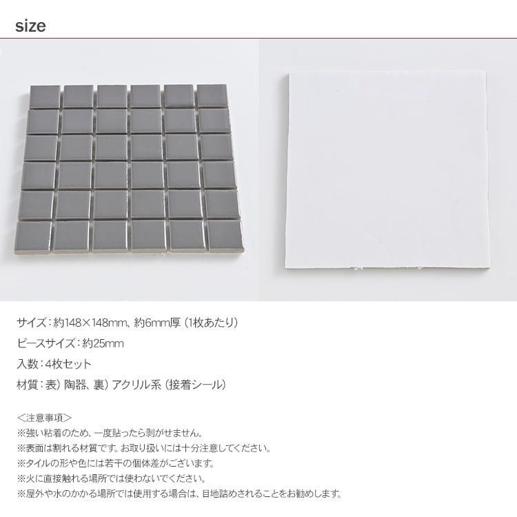 サイズ:約148×148mm、約6mm厚(1枚あたり)