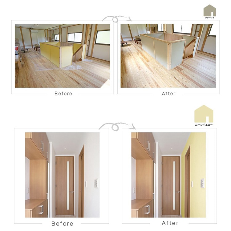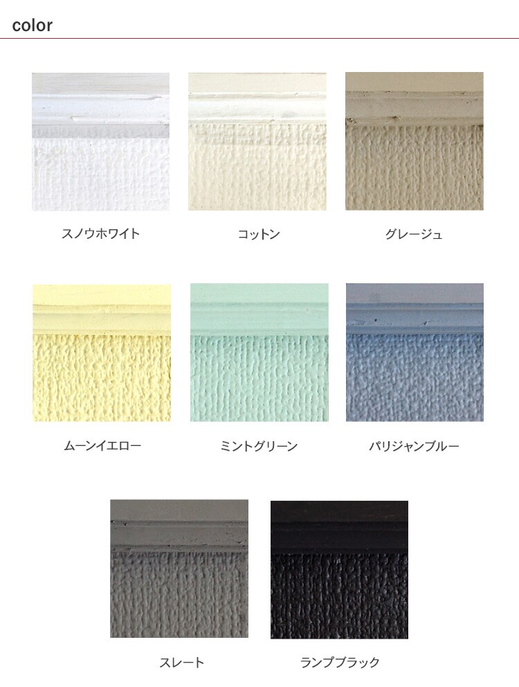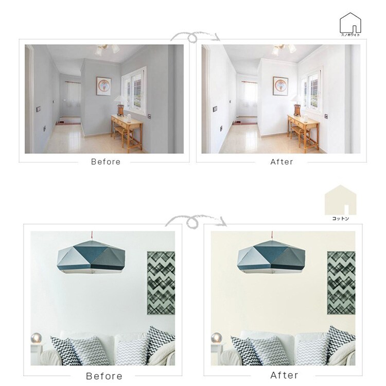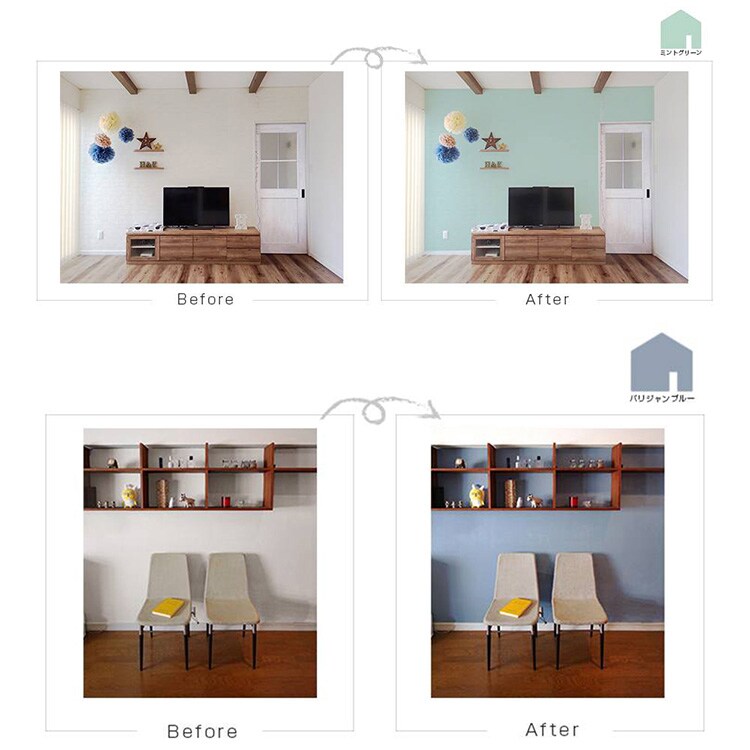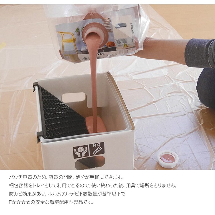 注意事項:※撥水加工、または汚れ防止機能など特殊な表面処理をした壁紙には塗装できません。