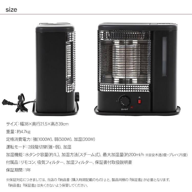 スチーム加温機能付 電気ストーブ WARMTH ブラック