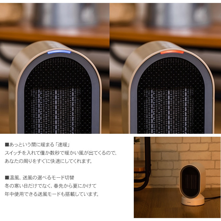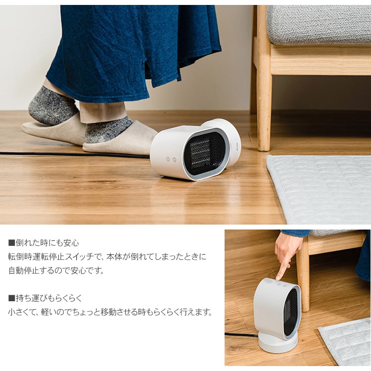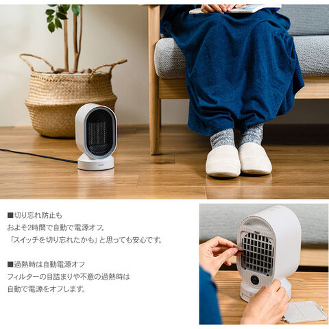 plus more プラスモア 首振り機能付 セラミックヒーター&ファン ホワイト 電気ファンヒーター 暖房機 足元ヒーター 小型 コンパクト 省エネ 首振り機能 安全設計 転倒時オフ機能 脱衣所 トイレ 洗面所
