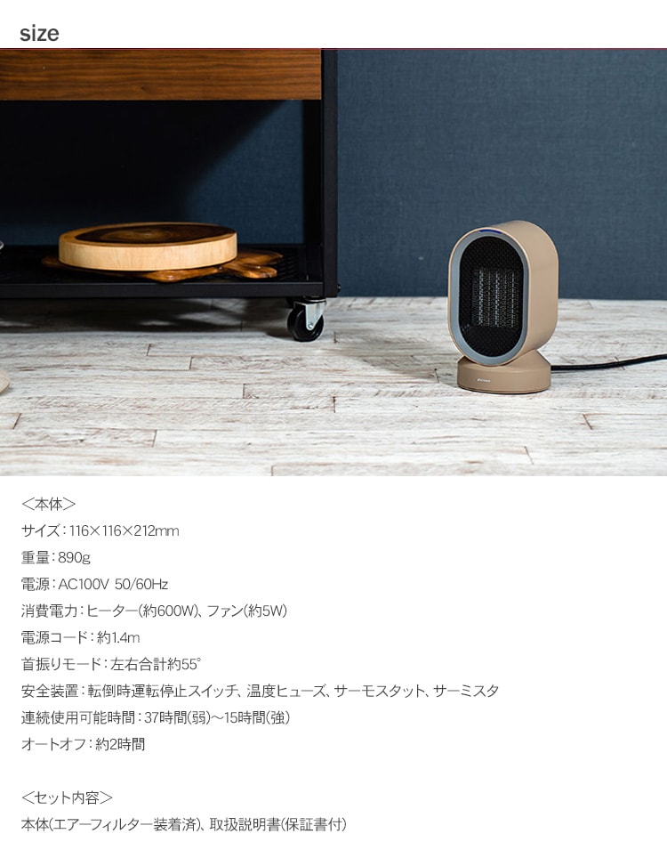 商品説明:コンパクトなサイズ感ながらも600Wのパワーでお部屋を暖かくしてくれる嬉しい一台。