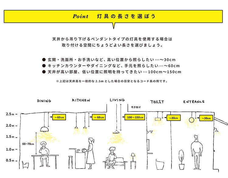 灯具のコードが長すぎる、高めの位置に取り付けたいと言った場合に使用します。