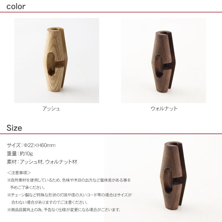 ※チェーン製など特殊な形状の灯具や径の太いコード等の場合はサイズが合わない場合がありますのでご注意ください。
