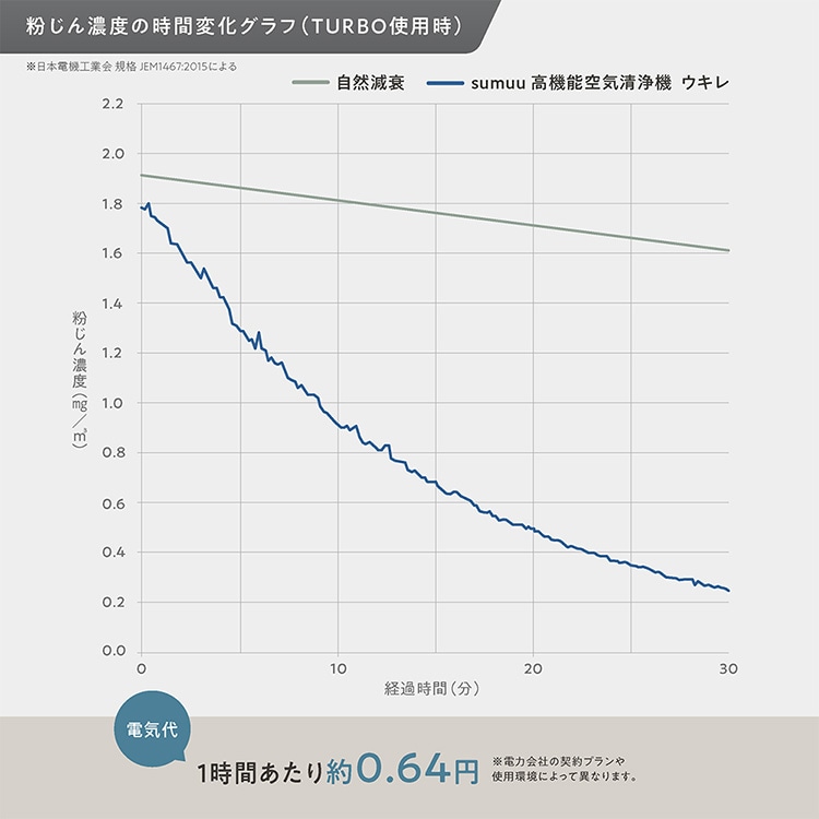 世界基準CADRに基づき、1時間に約30~36畳分の綺麗な空気を供給。