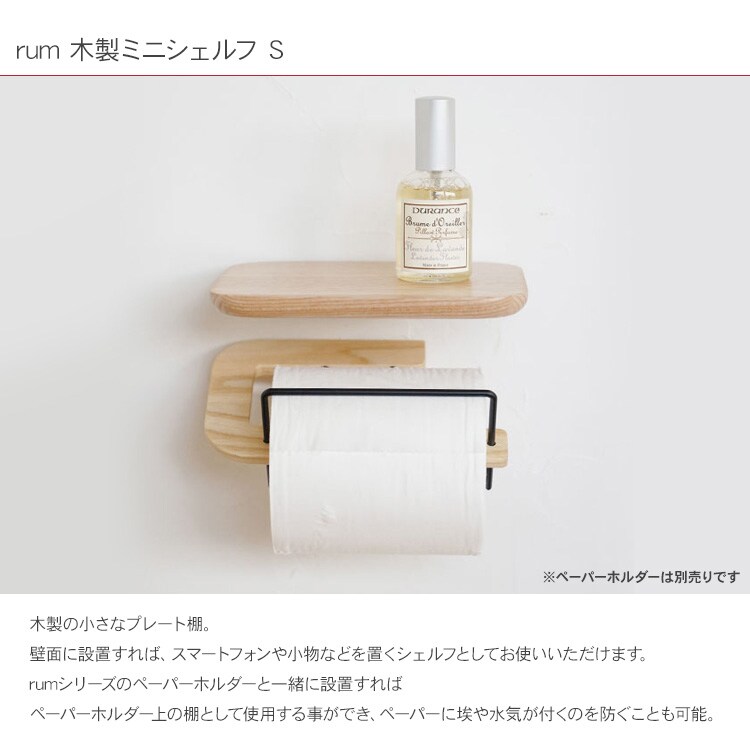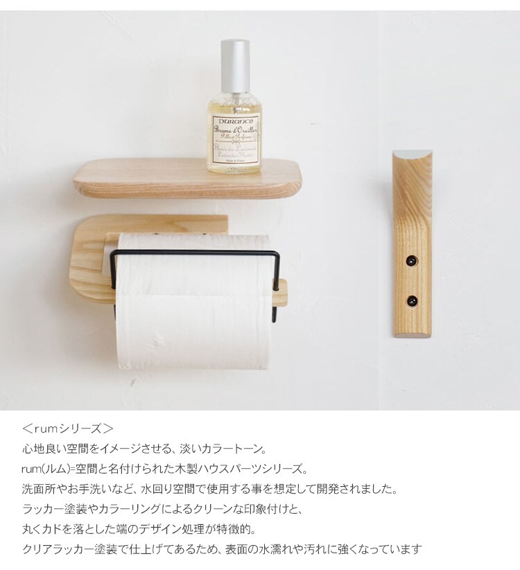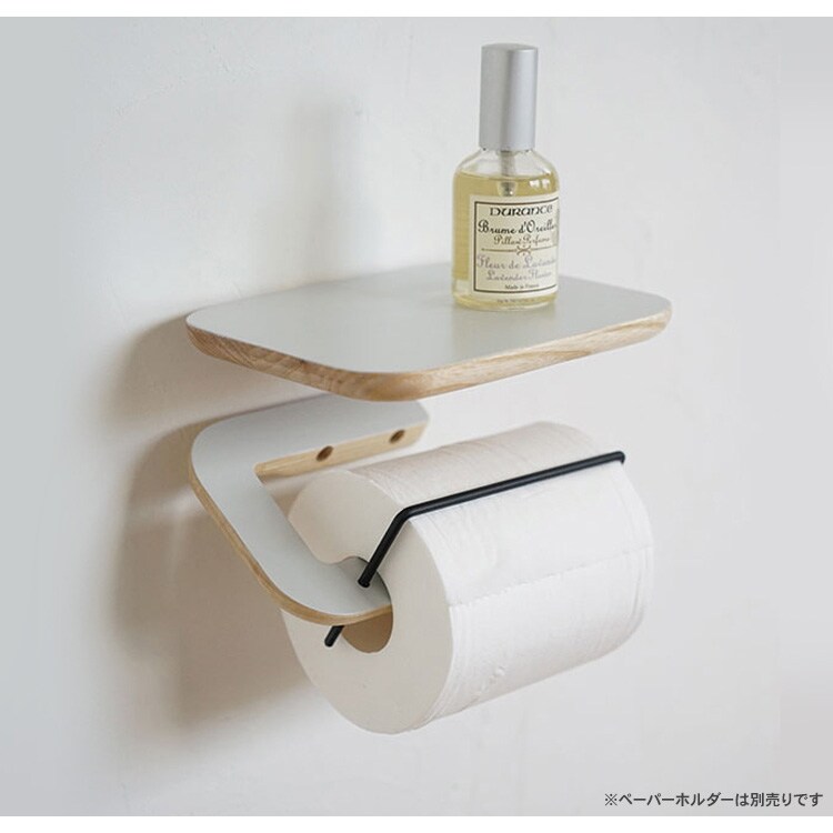 rumシリーズのペーパーホルダーと一緒に設置すれば、ペーパーホルダー上の棚として使用する事ができ、ペーパーに埃や水気が付くのを防ぐことも可能です。
