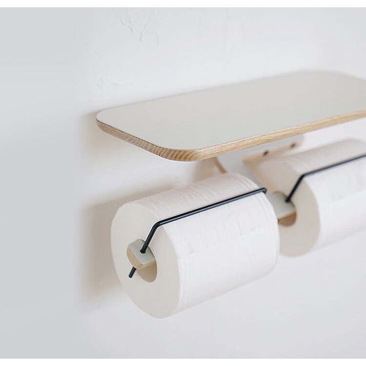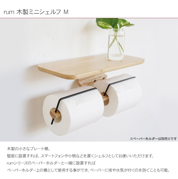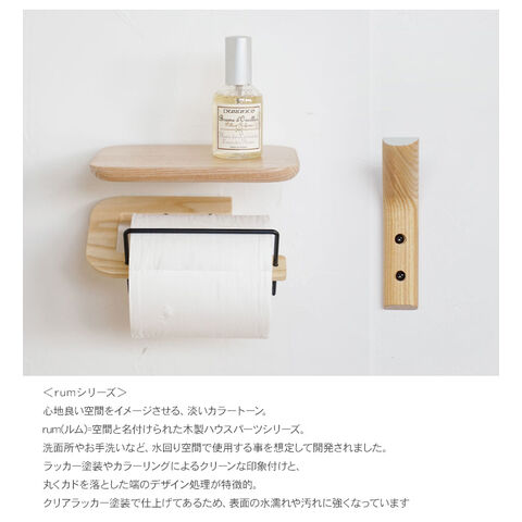 rumシリーズのペーパーホルダーと一緒に設置すれば、ペーパーホルダー上の棚として使用する事ができ、ペーパーに埃や水気が付くのを防ぐことも可能です。