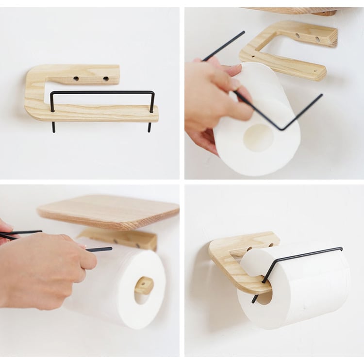 商品説明:デザイン性が高い木製のトイレットペーパーホルダー。