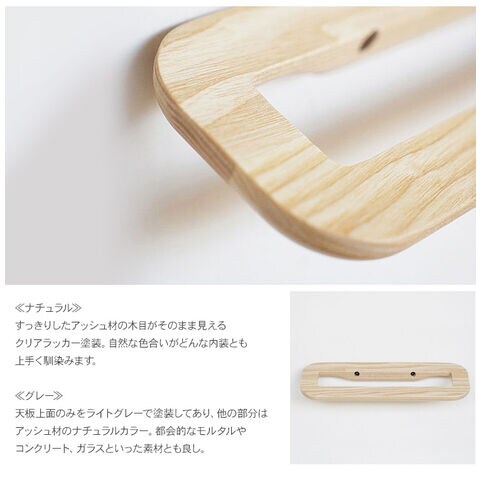 グレーは、上面のみをライトグレーで塗装してあり、他の面はすっきりしたアッシュ材のナチュラルカラー。都会的なモルタルやコンクリート、ガラスといった素材とも良し。
