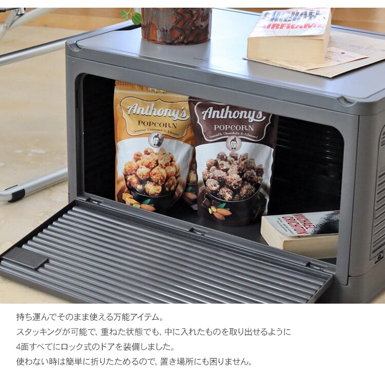 スタッキングが可能で、重ねた状態でも、中に入れたものを取り出せるように4面すべてにロック式のドアを装備しました。