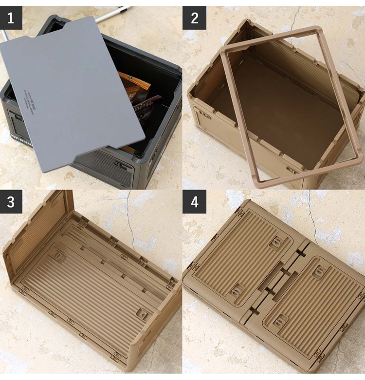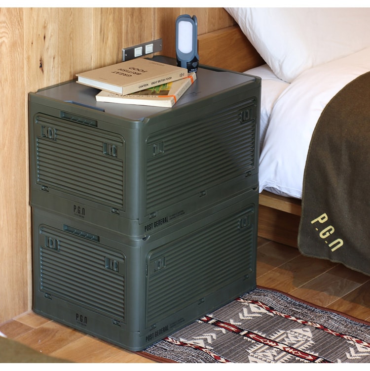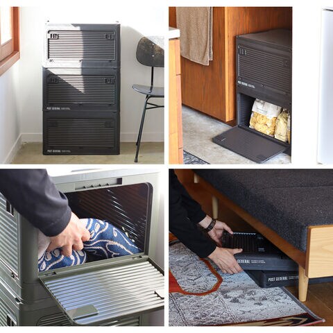 使い勝手の良い折りたたみ式のコンテナ収納。