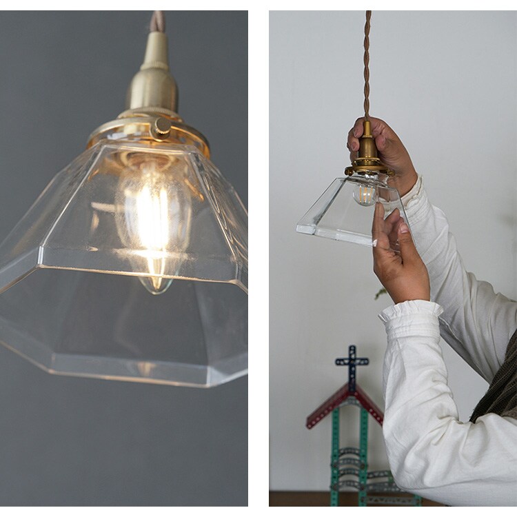 ガラスシェード ポリゴン クリア ランプシェード 照明 照明器具 おしゃれ 北欧 インテリア ガラス ダイニング リビング 寝室 トイレ 玄関 韓国 インテリア シンプル ナチュラル インダストリアル レトロ