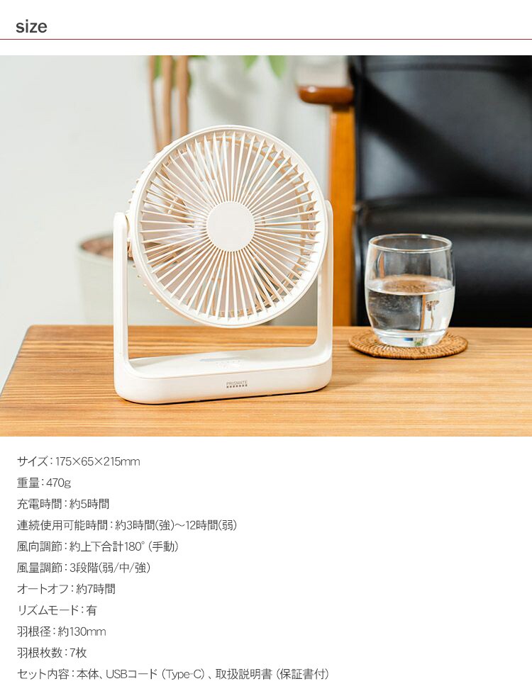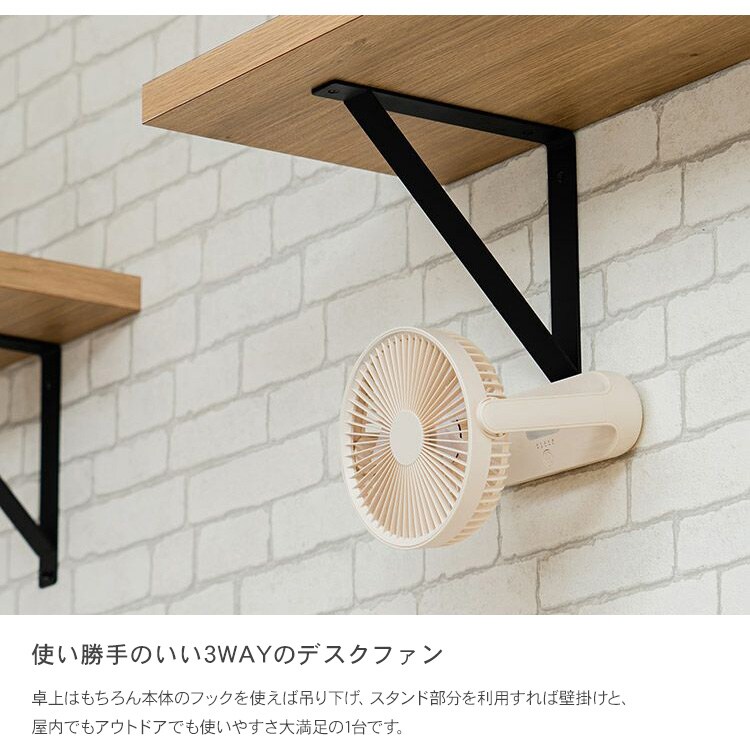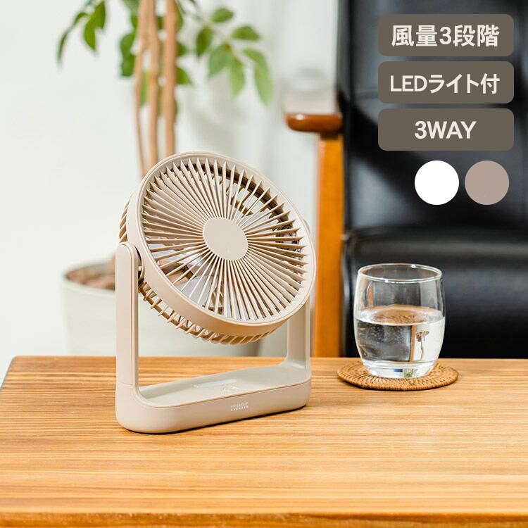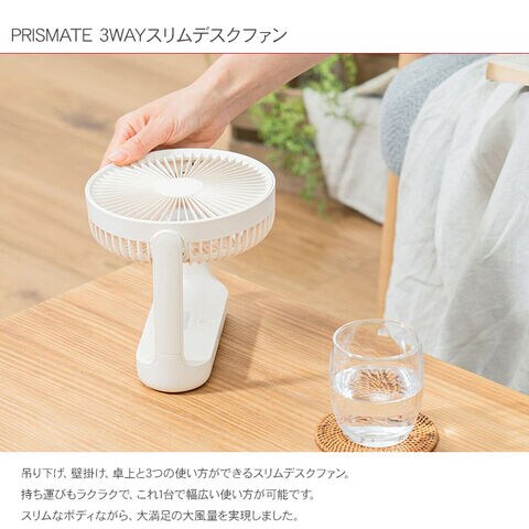 PRISMATE プリズメイト コードレス 3WAYスリムデスクファン オフホワイト 扇風機 空調機 風量調節 省エネ 充電式 持ち運び可能 風量調節 LEDライト アウトドア キャンプ