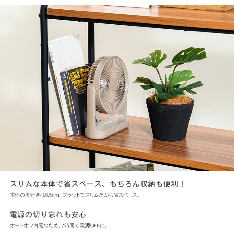 吊り下げ、壁掛け、卓上と3つの使い方ができるスリムデスクファン。