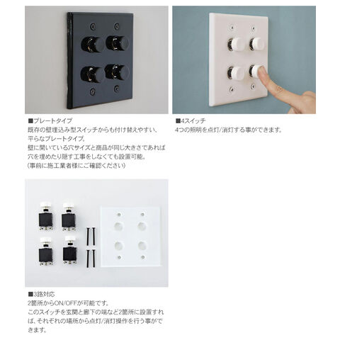 プッシュスイッチ セラミックプレート (4スイッチ) ブラック 照明 スイッチ 照明器具 壁スイッチ 北欧 インテリア おしゃれ 韓国 インテリア ライト ダイニング リビング 寝室 玄関 ナチュラル 和モダン インダストリアル レトロ