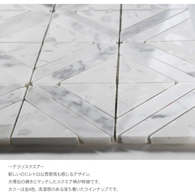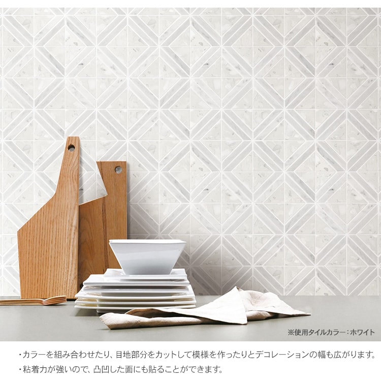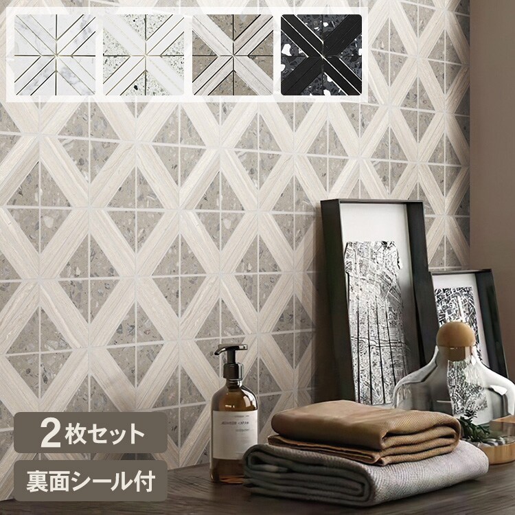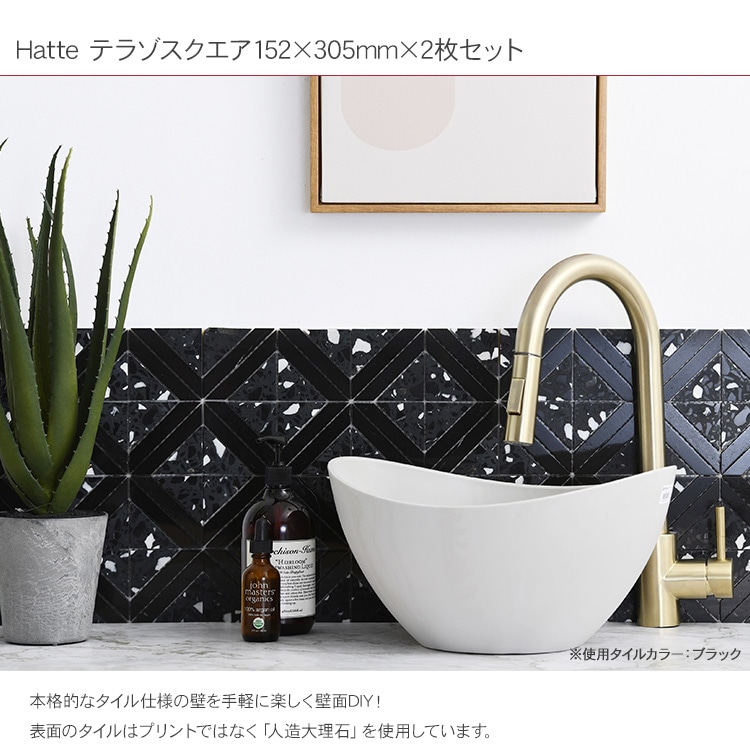 裏テープ付き Hatte (テラゾスクエア) 152×305mm(1/2サイズ) 1ロット(2枚) ホワイト _PP02 人造大理石 タイルシール 壁 キッチンタイル カフェ 店舗 インテリア キッチン リビング 寝室 玄関 テーブル 浴室 洗面台 トイレ 石材 DIY 室内 北欧 インテリア