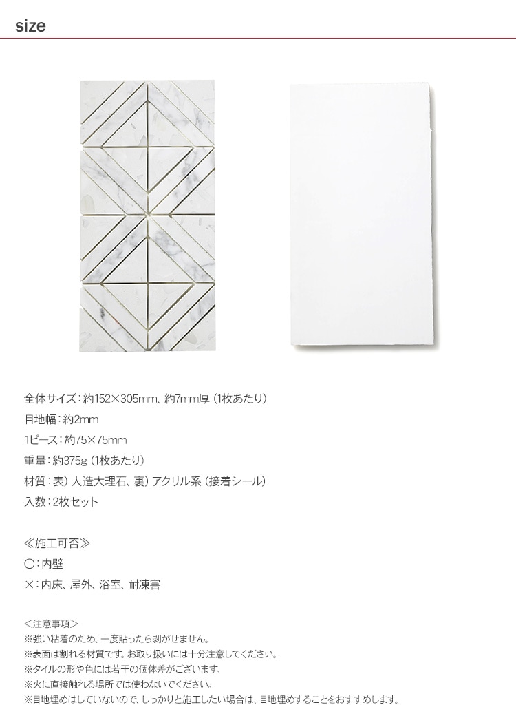 サイズ:全体サイズ:約152×305mm、約7mm厚(1枚あたり)