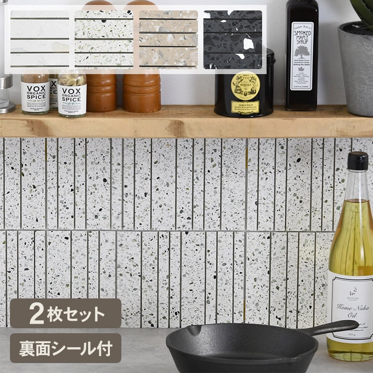 裏テープ付き Hatte (テラゾキットミックス) 148×296mm(1/2サイズ) 1ロット(2枚) ブラック _PP02 人造大理石 タイルシール 壁 キッチンタイル カフェ 店舗 インテリア キッチン リビング 寝室 玄関 テーブル 浴室 洗面台 トイレ 石材 DIY 室内 北欧 インテリア