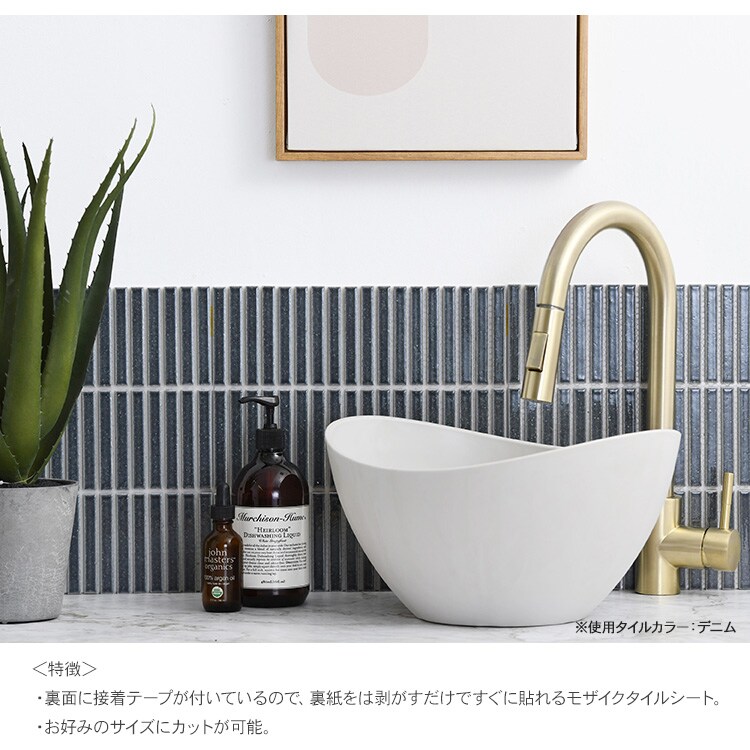 ・裏面に接着テープが付いているので、裏紙をは剥がすだけですぐに貼れるモザイクタイルシート。