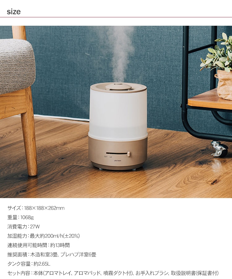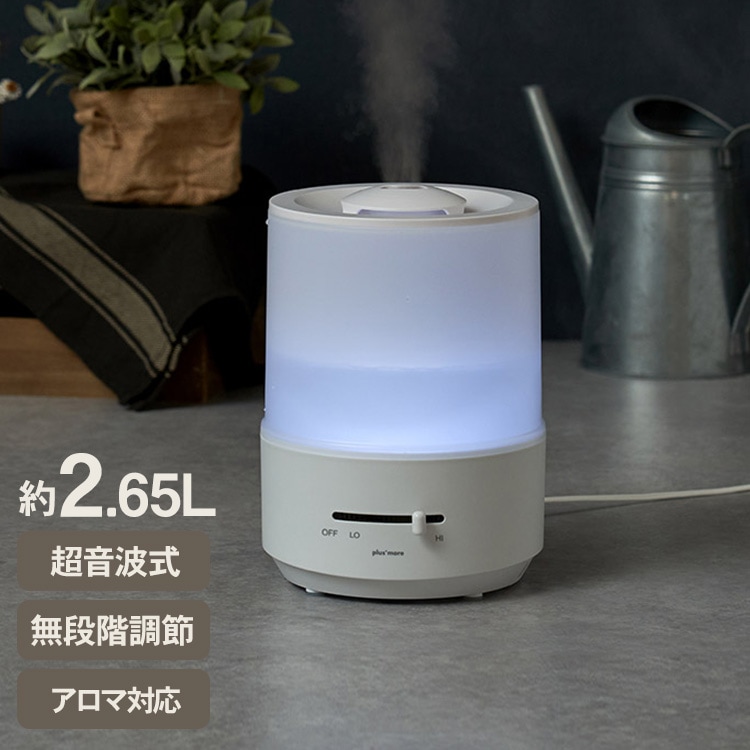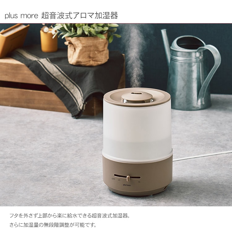 plus more プラスモア 上部給水 超音波式アロマ加湿器 キャメル 加湿 乾燥対策 花粉 風邪 予防 抗菌 省エネ エコ 上部給水 アロマ