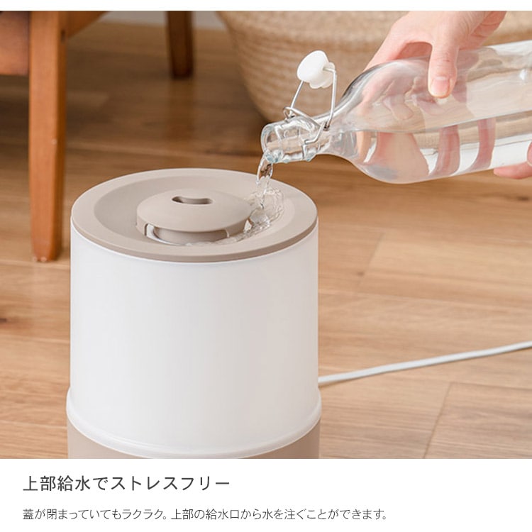 フタを外さず上部から楽に給水できる超音波式加湿器。