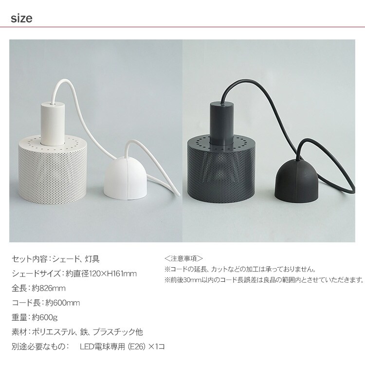 シェード・灯具・コードが一体型になった照明です。別途E26LED電球(1コ)のみご用意ください。