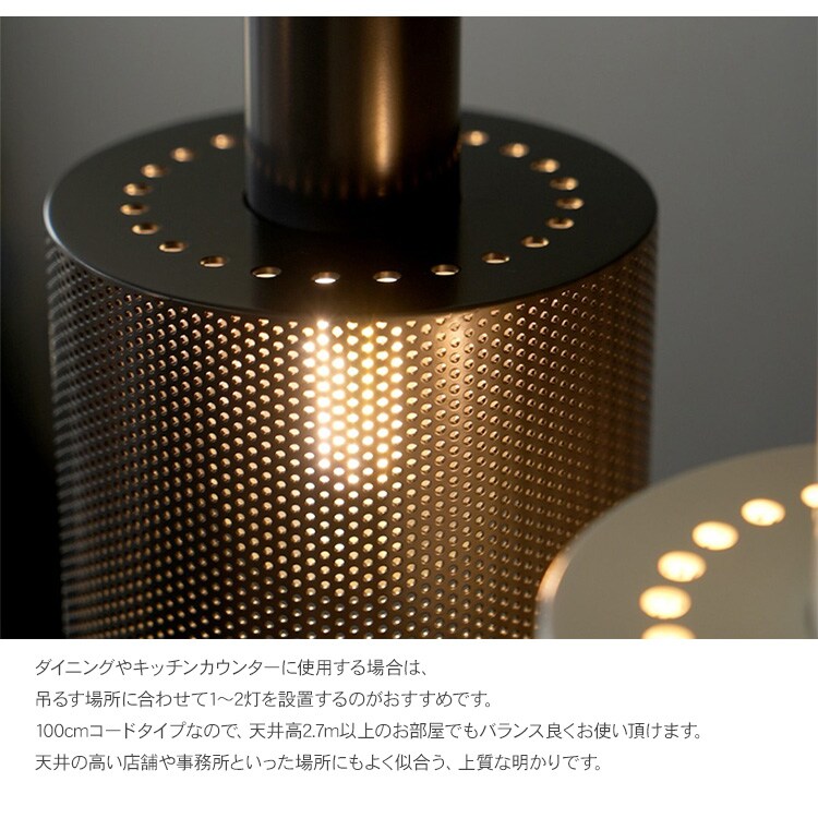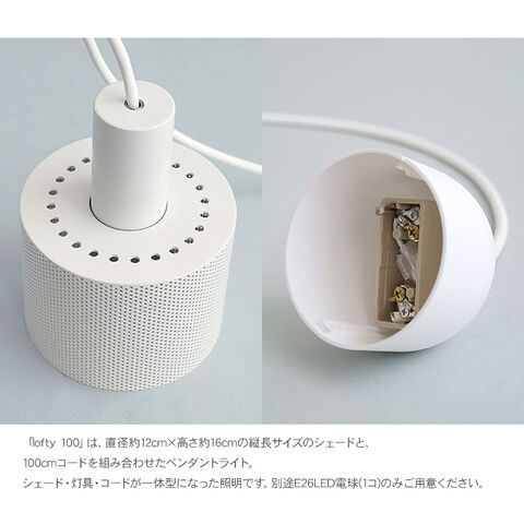 「lofty 100」は、直径約12cm×高さ約16cmの縦長サイズのシェードと、100cmコードを組み合わせたペンダントライト。