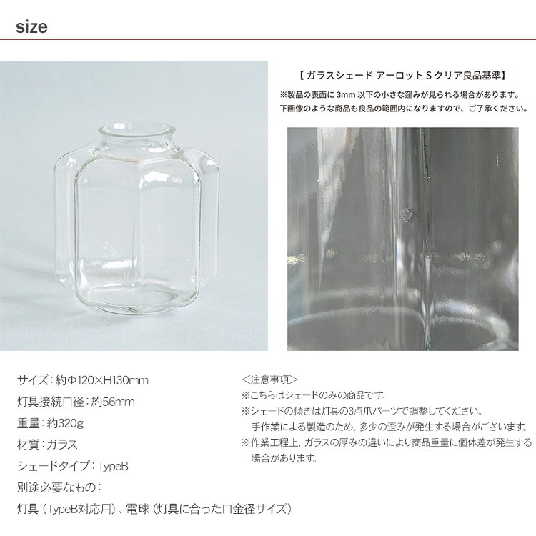 ガラスシェード アーロット S クリア ランプシェード 照明 照明器具 おしゃれ 北欧 インテリア ガラス ダイニング リビング 寝室 トイレ 玄関 韓国 インテリア シンプル ナチュラル インダストリアル レトロ