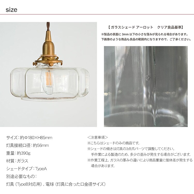 ガラスシェード アーロット M クリア ランプシェード 照明 照明器具 おしゃれ 北欧 インテリア ガラス ダイニング リビング 寝室 トイレ 玄関 韓国 インテリア シンプル ナチュラル インダストリアル レトロ