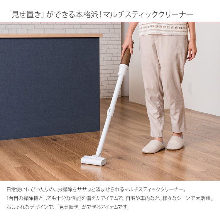 マルチスティッククリーナー ナチュラルウッド コードレス掃除機 ハンドクリーナー 軽量 アタッチメント 紙パック不要 おしゃれ