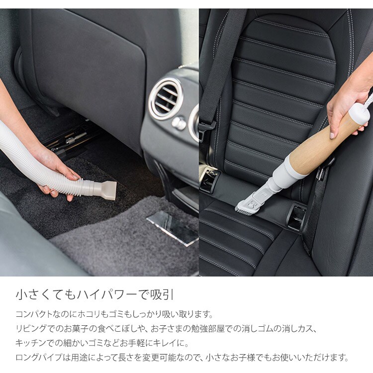 1台目の掃除機としても十分な性能を備えたアイテムで、自宅や車内など、様々なシーンで大活躍します。