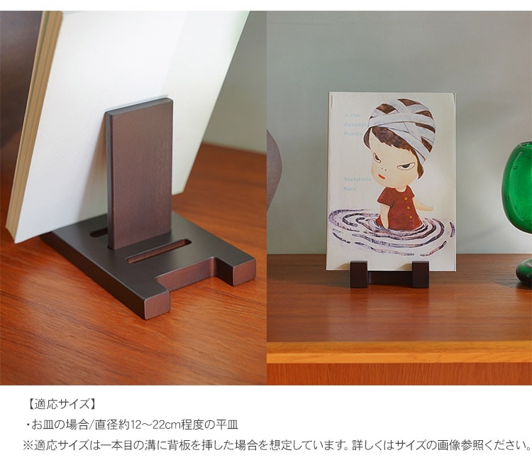 商品説明:絵皿やフレーム・本などを飾るための木製ディスプレイスタンドSサイズ。