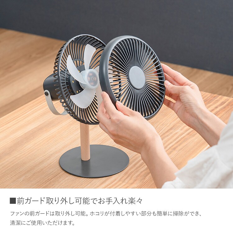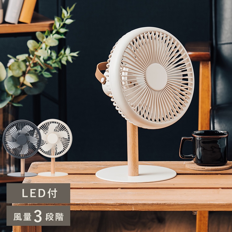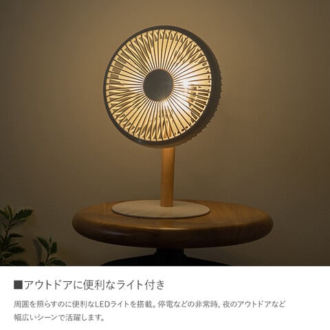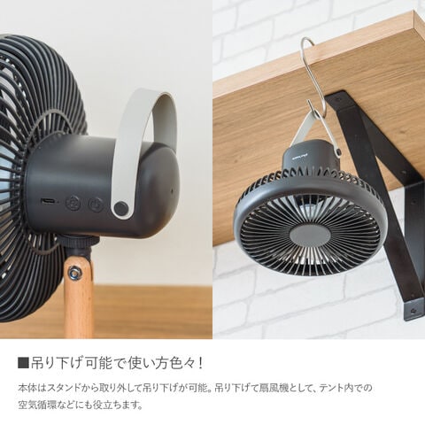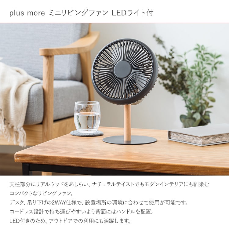 plus more プラスモア ミニリビングファン LEDライト付 ダークグレー 扇風機 コードレス 充電式 卓上 吊り下げ 小型 コンパクト PBAF003