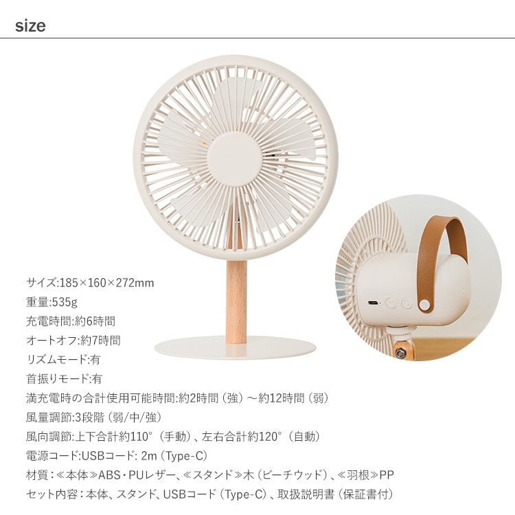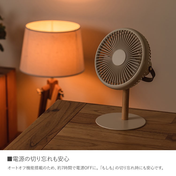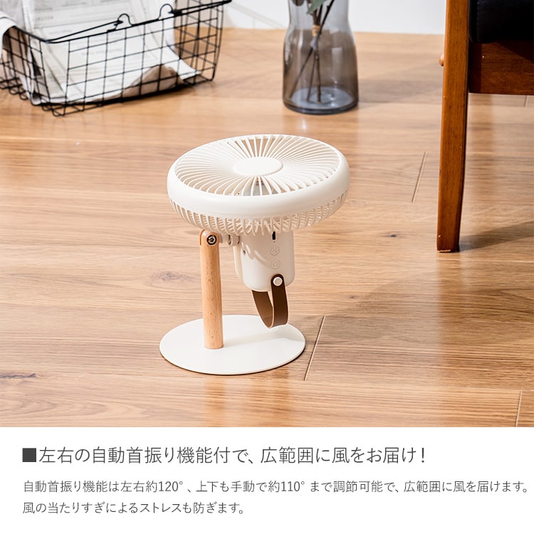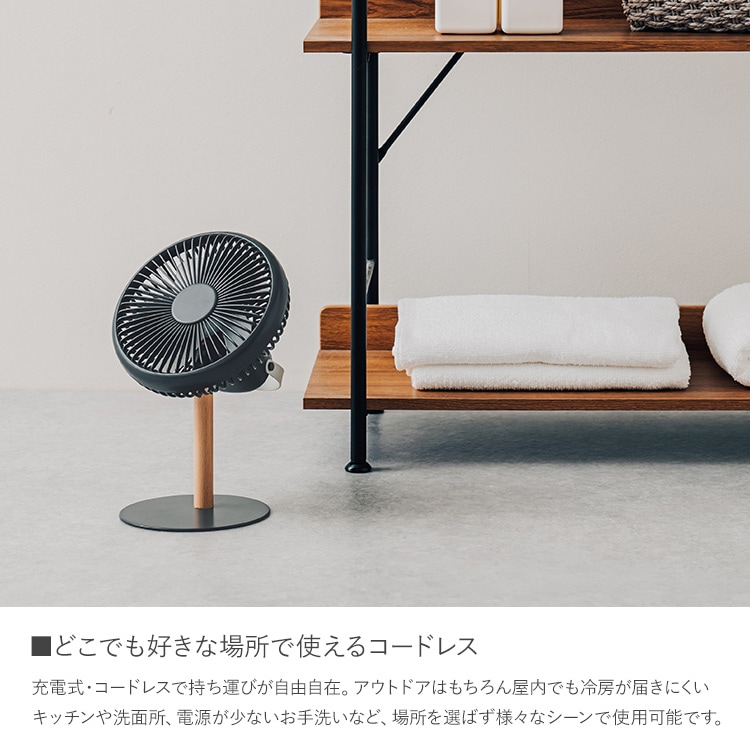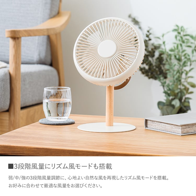 支柱部分にリアルウッドをあしらい、ナチュラルテイストでもモダンインテリアにも馴染むコンパクトなリビングファン。