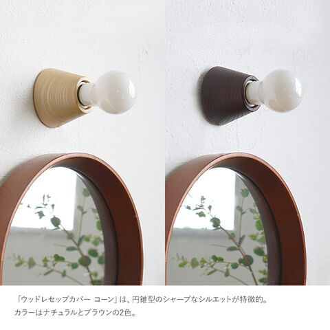ウッドレセップカバー コーン ブラウン レセップライト E26口径LED専用 照明 おしゃれ 照明器具 ウオールライト 天井照明 北欧 インテリア ライト 木製 天然木 リビング 寝室 玄関 洗面所 ナチュラル シンプル レトロ インダストリアル