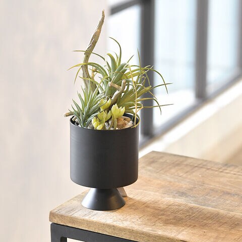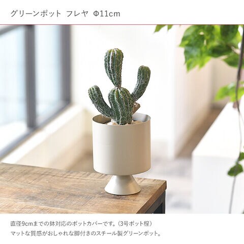 マットな質感がおしゃれな脚付きのスチール製グリーンポット。