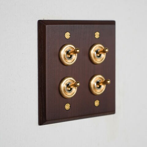 優しい雰囲気のウッドプレートと、真鍮製トグルの組み合わせがクラシカルで趣きのあるスイッチ。