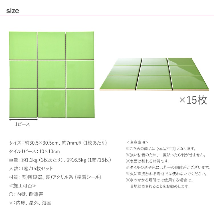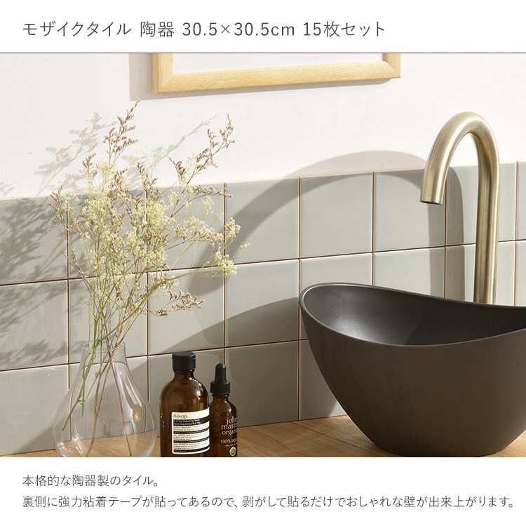 裏テープ付き 100角壁タイル 1箱(15枚) ライトグレイ _PP02 陶磁器 タイルシール 壁 キッチンタイル カフェ 店舗 レストラン リビング 寝室 玄関 テーブル 浴室 洗面台 トイレ DIY 100角 室内 北欧 インテリア