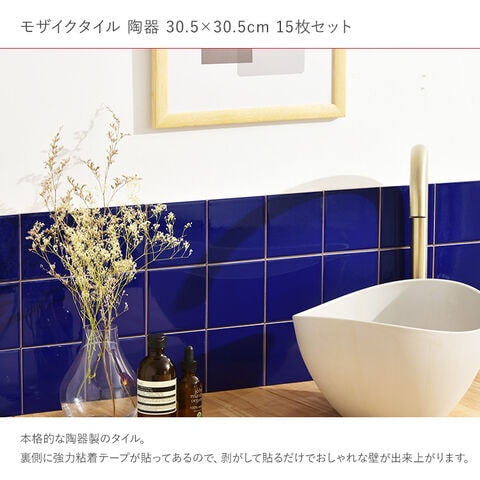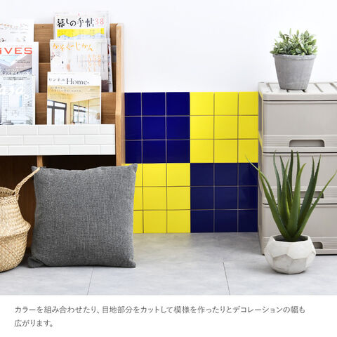 裏テープ付き 100角壁タイル 1箱(15枚) イエロー _PP02 陶磁器 タイルシール 壁 キッチンタイル カフェ 店舗 レストラン リビング 寝室 玄関 テーブル 浴室 洗面台 トイレ 石材 DIY 室内 北欧 インテリア