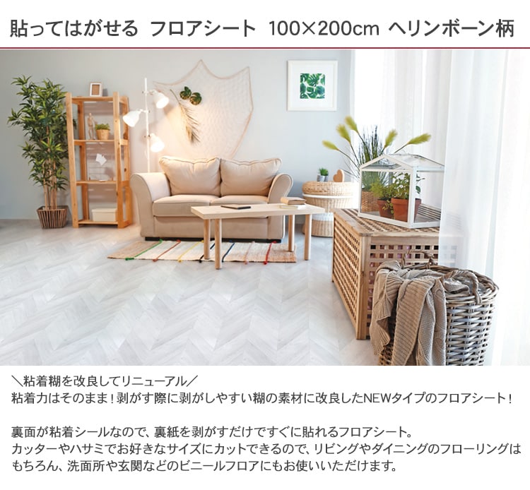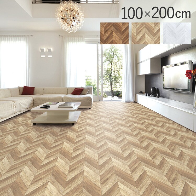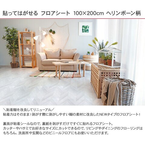 貼ってはがせる フロアシート 100×200cm ヘリンボーン柄 ライト