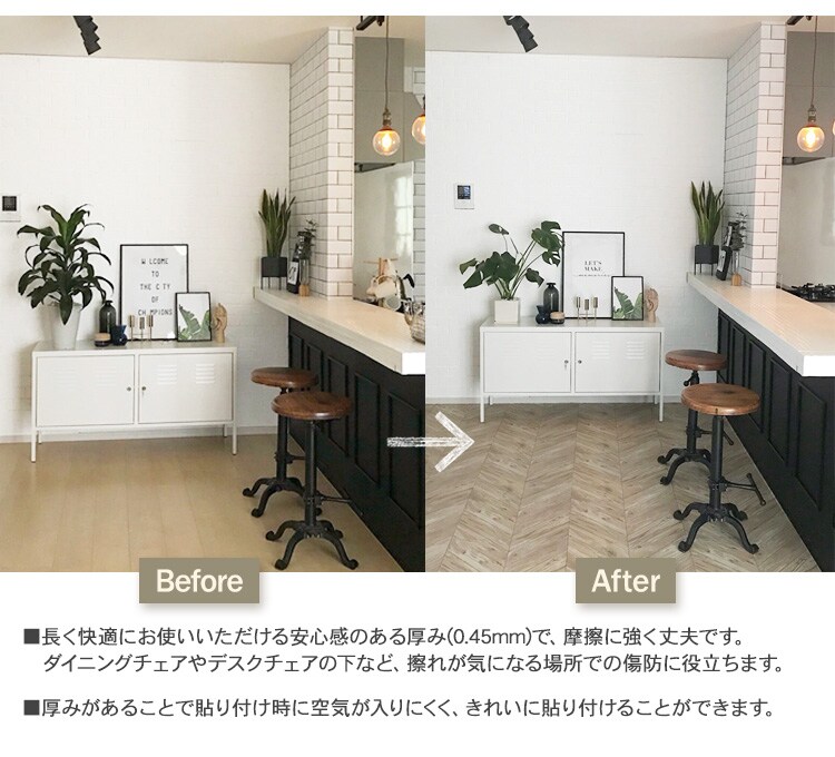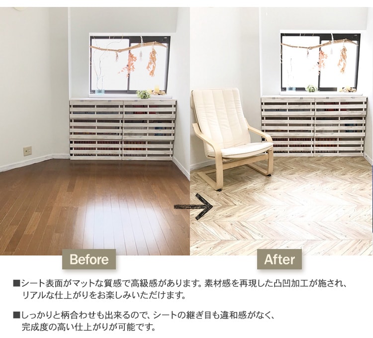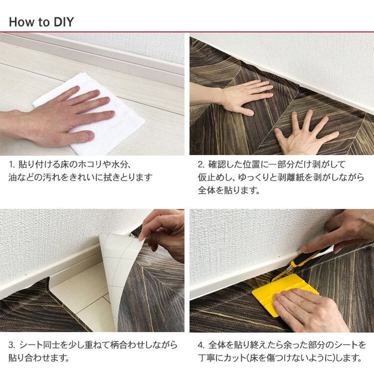 糊付きシールタイプなので、裏紙を剥がすだけですぐに貼れるフロアシート。