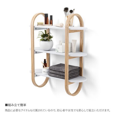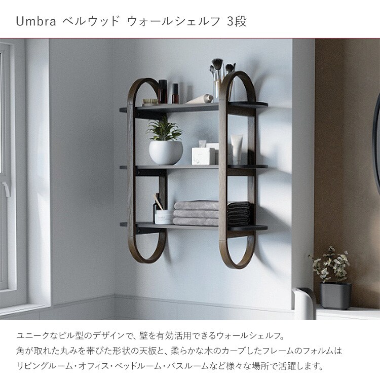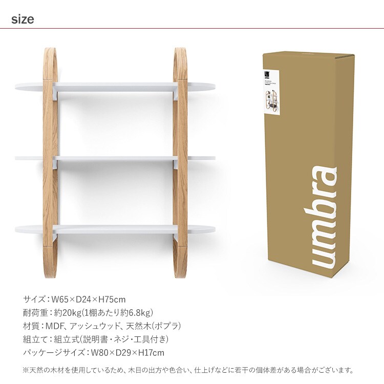 Umbra アンブラ ベルウッド ウォールシェルフ ホワイト×ナチュラル シェルフ棚 収納棚 壁面収納 ブラケット棚 ウッドシェルフ ディスプレイラック 幅65 ナチュラル シンプル 玄関 リビング 寝室 キッチン おしゃれ 北欧 インテリア